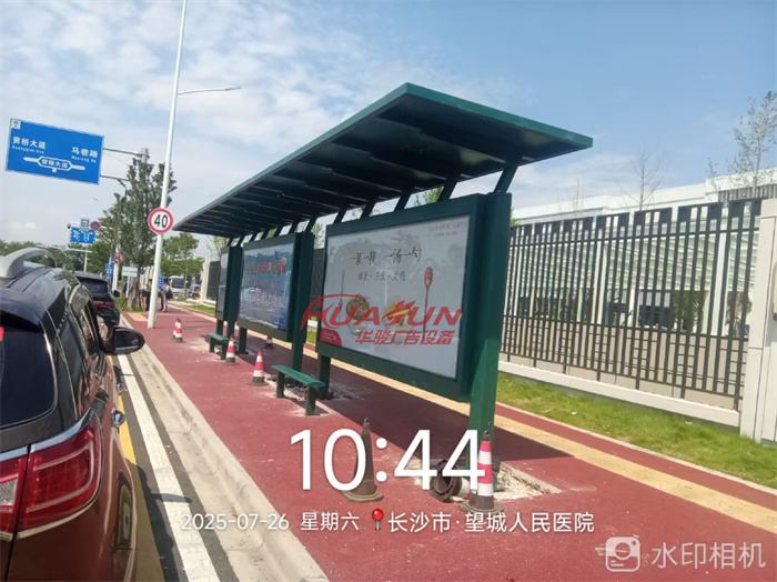 华骏供应湖南的绿色不锈钢经典款候车亭,今日如期启程!清新雅致的绿色外观,搭配经典大气的造型设计,公交候车亭,既跳出传统候车亭的沉闷感,又能自然融入湖南各地的城市街景与人文氛围。公交站台亭身选用高品质不锈钢材质,防锈耐腐、坚固耐用,公交候车亭,候车亭,可从容应对湖南多雨潮湿的气候,大幅降低后期维护成本。内部保留经典款的实用配置,涵盖遮阳挡雨顶棚、舒适候车座椅与清晰线路标识,兼顾颜值与功能,为湖南市民打造更优质的候车体验,候车亭,助力当地公共交通设施升级。